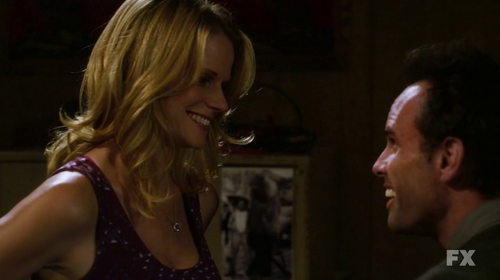 Ciò che però sorprende più di Justified è la capacità di non affidarsi troppo ai suoi straordinari personaggi principali rischiando di lasciare indietro gli altri (per molti uno dei problemi di Homeland, ad esempio), ma viceversa di curare l’evoluzione dei main characters all’interno del ventre che li ha partoriti, valorizzando al massimo il contesto in cui agiscono e, di conseguenza, anche i personaggi secondari con cui si relazionano. Ciascuno di questi, anche quello con meno screentime, è portatore di un mondo, di una precisa presa di posizione verso la vita, nonché un tassello del mosaico sociale e culturale costruito da Justified. L’uso delle armi nel sud dell’America, l’arredamento dei bar, la concezione del sesso sono solo alcune delle componenti connotative della serie, raffinate vertebre di una stratificata narrazione. Emblematico, in quest’episodio d’apertura, è il personaggio del poliziotto Bob, rappresentativo di un’intera classe di common men che sognano di essere come i propri eroi, in questo caso incarnati da Raylan.
