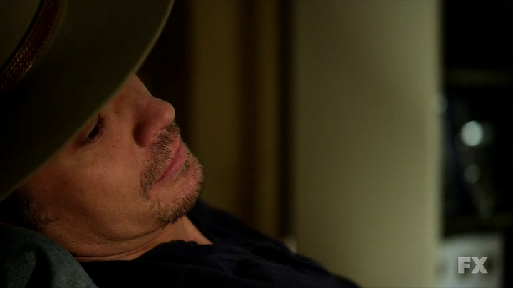 Dopo un breve prologo, di cui parlerò più avanti, si passa senza indugi alla presentazione del protagonista, evitando di caricare più del dovuto le attesa già altissime e mettendone in scena il corpo e il proverbiale carattere andando a pescare nel già noto, in modo da codificare una nuova familiarizzazione. In particolare, Raylan viene mostrato in tutte le peculiarità che lo contraddistinguono: understatement, self confidence, ironia tagliente, prontezza e abilità nell’uso della violenza. Tanto perentoria è la scelta di mettere in scena Raylan, quanto altrettanto posticipata è quella di riallacciarlo ai traumi della passata stagione, preferendo mostrare la velleitarietà di una consapevolezza priva delle sicurezze di un tempo, ma solamente autoimposta, quasi fosse una maschera atta a coprire il crollo delle dighe morali e sentimentali dell’eroe, le fragilità che già nel corso di questa premiere spuntano di sguincio, impossibili da neutralizzare completamente.