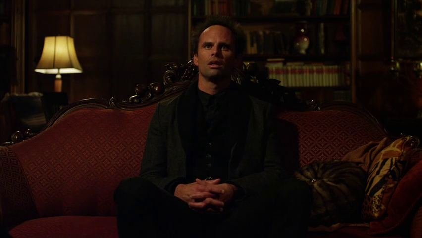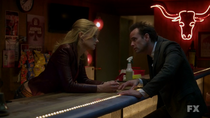Se Raylan procede a tentoni, e con lui, necessariamente, anche la narrazione principale, l’episodio ha almeno la possibilità di occuparsi di quella che da sempre, dai fan e non, è considerata la coppia più affascinante: Ava e Boyd. La donna è ormai da tempo, a tutti gli effetti, una big lady, sovrana dell’universo femminile della serie e perfettamente in equilibrio tra mascolinità (nessuna remora ad affrontare uomini e ad impugnare fucili) e femminilità (la sua bellezza matura emana un’aura a tratti magica), tanto da essere una delle figure femminili più interessanti della televisione contemporanea. Ava è, però, affiancata da un uomo che, quanto a carisma, non solo le tiene testa, ma sovrasterebbe quasi chiunque, specie per via della vitalità e dell’espressività recitativa di Walton Goggins (che lascia il segno anche nei ruoli secondari, come fa in Django Unchained). Il finale è forse l’unica sequenza di alto livello di un episodio dispersivo e senza particolare anima, una conclusione in cui emergono l’amore tra Ava e Boyd, la forza affabulatoria di quest’ultimo e il suo potere persuasivo, i quali suggellano, attraverso la proposta di matrimonio, ancora di più il legame della coppia.
