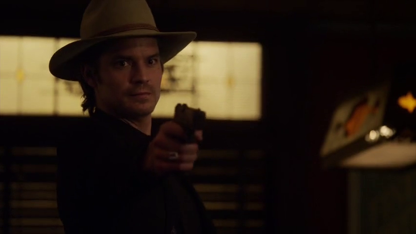 Nel paesaggio arido di Harlan, nelle faide tra famiglie, nelle lotte per il potere locale, Boyd e Raylan vengono messi di nuovo allo specchio, come ormai succede da tempo in Justified. La risultante è che, sebbene il marshall sia perfettamente aderente alle logiche sudiste che confondono violenza e vita in un regime di civilizzazione in parte ancora acerbo – simbiosi rappresentata in maniera quanto mai efficace dal cappello da cow boy – egli non riesce ad essere altrettanto sicuro di sé rispetto alla tenuta morale e personale. La paternità, l’assenza di certezze, la solitudine, la mancanza di persone che gli dimostrano affetto sincero, sono tutti fattori che lo rendono una sorta di ginestra con la pistola, sempre sul punto di mollare tutto. Boyd, viceversa, è progressivamente più sicuro, sempre più solido e più forte, come dimostra la scena d’apertura dove, nel mascheramento della rapina, ogni codice visivo e sonoro, dall’orologio a cipolla, al vestiario, alla sicurezza della voce, ci riconsegna un personaggio che ormai è tutt’uno con il mondo che lo circonda.