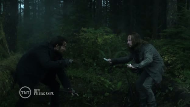 Falling Skies si trova comunque per la prima volta di fronte ad uno spunto interessante, sebbene non se ne accorga nemmeno: mettere uno contro l’altro due membri della stessa famiglia e inserirli in una situazione in cui solo uno potrebbe uscirne vivo. Peccato che, alla fine, torni il fiero Captain Weaver a rovinare tutta la tensione, a suon di “Hal è uno di noi“, “Ne usciremo tutti vivi“, “Siamo tutti una famiglia” (bastaaaaaaaa!!), “Nessuno uccide nessuno, perché è peccato“. Naturalmente, appena uno come Pope prova a pensarla in modo sensato, seppure politicamente scorretto (facciamo fuori il “fighetto” e la chiudiamo qui), viene subito rifiutato, relegato al ruolo di cattivo, soggetto allo sguardo moralista di Captain Weaver, che infatti poi va a trovarlo nel suo covo, entrando come il Messia venuto a redarguire i peccatori.