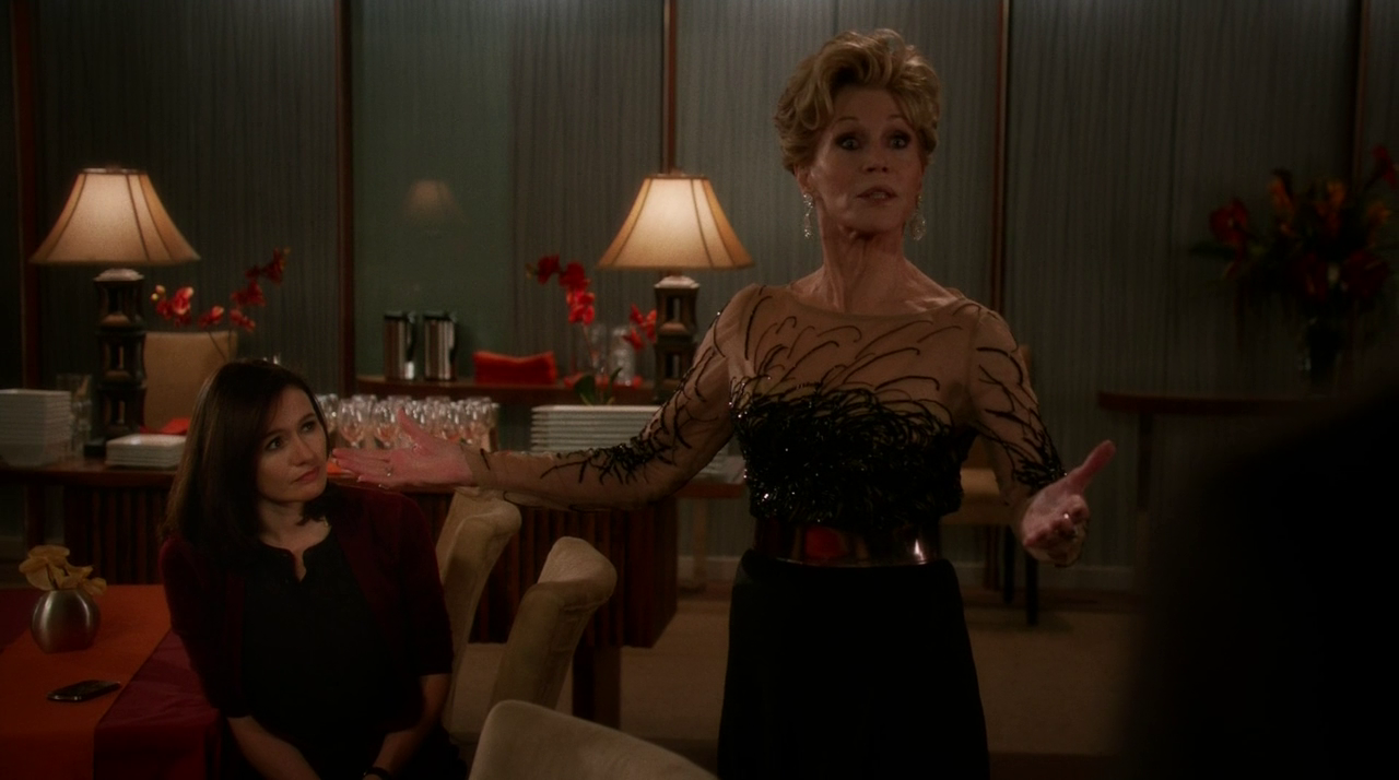 Prima di concludere non si può non menzionare il finale dell’episodio, vera e propria ciliegina sulla torta, dominato (è il caso di dirlo!) da una Jane Fonda incredibile, mattatrice incontrastata della scena, donna con la D maiuscola (e non si dica più che Sorkin è maschilista!) in grado di annichilire tutti, Wil compreso, dispensando carattere e ironia per chiunque.