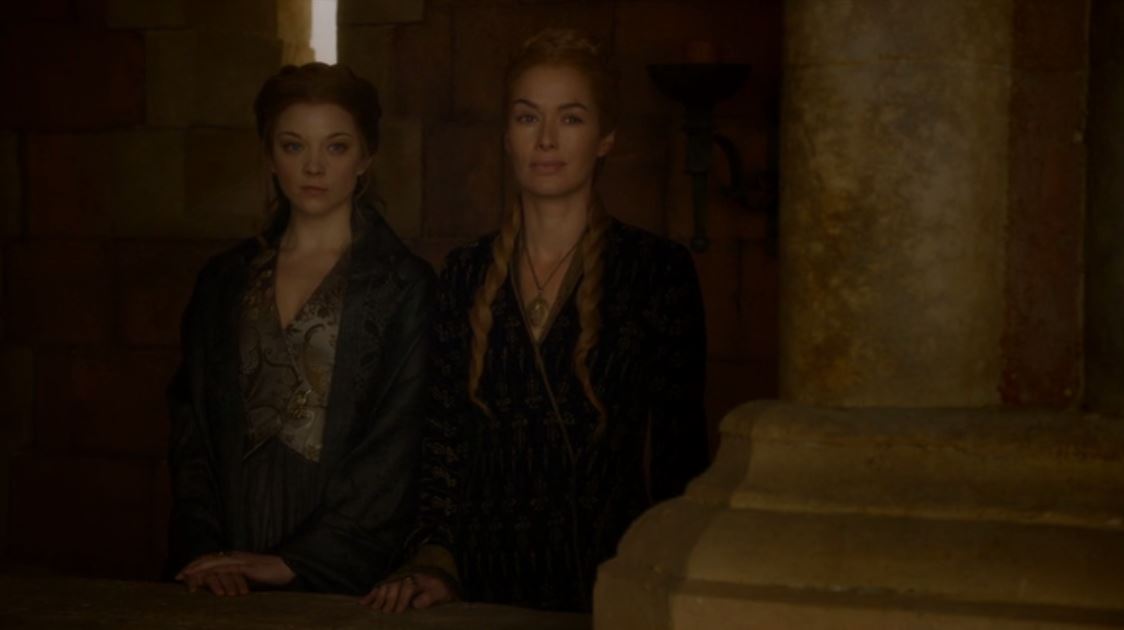 L’incoronazione di Tommen è la scena che apre la puntata, ma l’attenzione dello spettatore viene subito focalizzata su Cersei, la vera protagonista degli avvenimenti di King’s Landing: la preoccupazione verso il nuovo sovrano è alta e si realizza in un accordo pacifico con Margaery, l’unica donna che, proprio perché ha sempre rappresentato una minaccia per la madre di entrambi i re, è in grado di capire l’orrore e lo sconvolgimento di chi – più di tutti – era entrato in stretto contatto con Joffrey Baratheon. Il ragazzo – perché, sebbene pochi se lo ricordino, si parla pur sempre di un ragazzo – era un mostro, il peggior sovrano che chiunque avrebbe potuto immaginarsi, eppure Cersei non è mai riuscita ad odiarlo: il suo rapporto tormentato col figlio è completamente comprensibile e mostra come il legame familiare, che si realizza alla massima potenza nell’amore madre-figlio, sia qualcosa di irrazionale e potentissimo, in grado di spingere l’essere umano verso la negazione di se stesso. La Cersei Lannister che ci viene mostrata in questo episodio è una donna profondamente cambiata, quasi irriconoscibile nel suo comportamento: ha negato la sua pretesa di controllo su Tommen per garantirne la sicurezza, e ha negato il suo caratteristico orgoglio, chiedendo al principe Oberyn un favore per la figlia e cercando di persuadere il padre a proposito del processo.