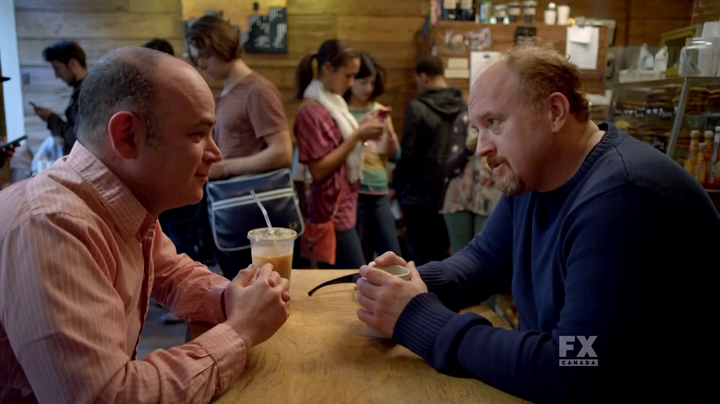 Fin dalla prima attesissima sequenza di Back, Louis CK dimostra una grande abilità nel saper giocare con la percezione che il pubblico televisivo ha della distanza temporale che divide questa premiere dal season finale della stagione precedente: lo stand up iniziale ha proprio la capacità di rappresentare con ironia quella sensazione di straniamento che lo spettatore percepisce nel venire a contatto con uno show televisivo dopo una lungo periodo di stand by narrativo. Lo shock iniziale nel vedere il Louie finzionale invecchiato di due anni in un solo minuto viene mitigato tramite un raffinato monologo comico, riuscendo a rendere la percezione del passaggio del tempo da parte dello spettatore in maniera molto sottile. Quando nella seconda surreale sequenza dell’episodio una squadra di netturbini irrompe in casa di Louie, interrompendone il sonno, abbiamo fin da subito la percezione di cosa voglia dire per lui scrivere la serie; dover fare i conti con il personaggio che interpreta è una vero e proprio esercizio di autoanalisi: una rappresentazione di quella che è prima di tutto una crisi personale, che Louie riesce ad incanalare tramite il registro espressivo della comedy televisiva.