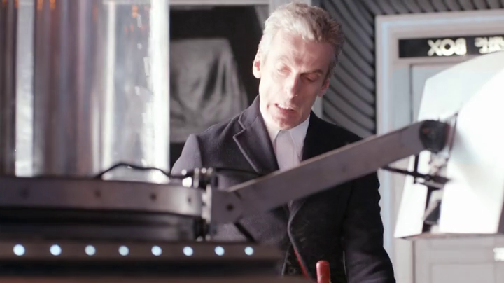 Posso dire che rivedendo la scena del Dottore che rientra in volo nel tardis, non è, tutto sommato, poi così trash… o meglio lo è, ma non così tanto per la serie. Ten e Eleven hanno fatto di peggio ce si pensa: tipo Ten si fa sollevare dagli angeli del Titanic e entra nella cabina di pilotaggio sfondando il pavimento – in una sequenza talmente kitch che fa il giro e diventa bellissima -, ed anche in The End of time, si getta dall’astronave sfonda il soffitto e cade tra il Master e Rassalon. Eleven invece in uno speciale natalizio cade sulla terra da un’astronata ed indossa una tuta spaziale anti-impatto mentre cade. Questa azione di paracadutismo tutto sommato non è così “over the top” per la serie. Per giunta Twelve non è un Dottore imbranato, come Eleven, anzi è uno cazzuto che sa anche combattere come dimostrato in Robot of Sherwood.