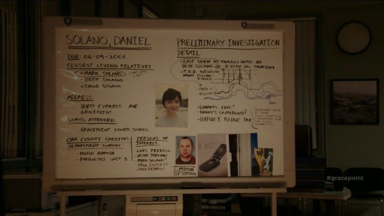 Quello che ci si aspettava da Gracepoint, date queste premesse, era sicuramente di ritrovare questo tipo di storia trasferita negli Stati Uniti. In realtà quello che vediamo è sì l’impatto di un misterioso omicidio su una minuscola cittadina, ma su una qualsiasi; se in Broadchurch il punto fondamentale era trasformare “unico” in “tutto”, qui l’operazione si può riassumere in “unico” che scivola tristemente verso il “nessuno in particolare”. È come sela sostanza che era alla base della versione britannica si fosse sgonfiata sotto il suo stesso peso, lasciando il semplice scheletro di un plot dato in mano ad un cast diverso. In questo senso, almeno fino al settimo episodio, non ha giocato a favore della versione statunitense neanche l’aver lasciato Tennant come protagonista: pur con il tentativo di differenziare il passato di Hardy da quello del nuovo Emmett Carver, la gestione dello stesso attore, nello stesso ruolo, non ha dato né un senso di continuità né un senso di differenza, ma ha generato solo un lungo e costante déjà vu senza via d’uscita. Ciò che sembra inspiegabile è capire come un bravo attore, chiamato a ricoprire lo stesso e funzionante ruolo, si riveli nel nuovo contesto molto meno efficace, quasi scontato. A mio avviso, due sono le ragioni profonde che erodono alla base Gracepoint e non riguardano il resto del cast: la scrittura è molto meno incisiva e ai nostri occhi tutto risulta ridondante.