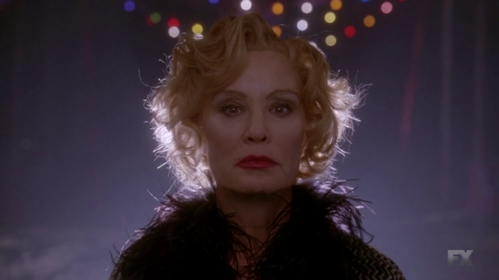 Freak Show prova anche a muovere una critica alla televisione, portando la protagonista Elsa Mars dal tendone allo studio televisivo e facendola diventare una star di Hollywood. Dal palco del circo a quello del piccolo schermo il passo è breve, come è (troppo) breve la chisura della storyline circense e veloce il salto temporale agli anni ’60. Elsa, che sembra aver trovato la serenità on stage ‒ assolutamente fittizia, ma almeno presente ‒ è sempre la stessa dietro le quinte, quella che continua a tiranneggiare il marito e tutti gli assistenti che lavorano per lei come faceva anni prima; una frase detta dalla donna rende fin troppo palese il collegamento: “I never perform on Halloween“, citazione più che esplicita dell’episodio di Halloween. Questa critica, che punterebbe ad accomunare i freak del circo con malformazioni fisiche e mentali alle personalità televisive amate dal pubblico, se sulla carta è vincente, nella pratica risulta indebolita dalla natura stessa di American Horror Story, che da progetto ambizioso ed artistico si è trasformato in una macchina mangiasoldi in rapido esaurimento.