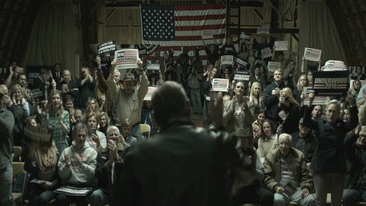 In realtà, il classico sguardo in macchina del nostro antieroico protagonista si presta a più di un’interpretazione: potrebbe essere prevalente quel mezzo ghigno disgustato, per aver dovuto cedere a un nemico una vittoria conseguita su più fronti; oppure potrebbe emergere, sotto quel primo piano del viso parlante di Kevin Spacey, una sorta di “occhiolino d’intesa” sinistro e raggelante con lo spettatore ‒ a far intendere che anche queste dimissioni erano parte di un disegno. Gli intrighi del potere della tagline non sono forse anche questo? Un capriccio accontentato, poiché non si può dir di no alla propria moglie, men che meno a Claire Underwood; e allora sì, ecco un incarico di ambasciatore a tempo, strappato praticamente a forza e terminato giusto in tempo utile per la fase clou della campagna elettorale. In fondo non è ‒ per sua stessa ammissione -‒grazie a lei che Frank è alla Casa Bianca?