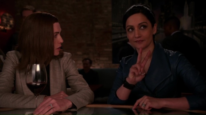 Necessaria perché possiamo dire che il confronto tra le due donne funzioni da espediente per tirare le somme dell’intero percorso di Alicia e per mostrarne una sua evoluzione: da moglie e amica in preda alle gelosie, alla rabbia, al risentimento, arriviamo ad una donna più risolta, che ha imparato a non farsi danneggiare dal passato e che, al tempo stesso, ci arriva quando ormai è troppo tardi – “I’ll never see you again?” “I don’t think so.” “That’s too bad”. Un momento necessario, come si diceva, ma più per la protagonista che per il personaggio in uscita. E tuttavia risulta anche una scena non obbligatoria, posta in essere solo per ripercorrere una tappa importante della vita di entrambe (le famose bevute al bar) e per dare al pubblico un contentino – che però, un po’ perché ormai in ritardo, un po’ perché abbastanza asciutto e senza grandi emozioni, risulta alla fine persino fasullo, e indipendentemente dalla presenza o dall’assenza del green screen di cui tanto si parla in questi giorni (per maggiori approfondimenti si rimanda alla nota).
