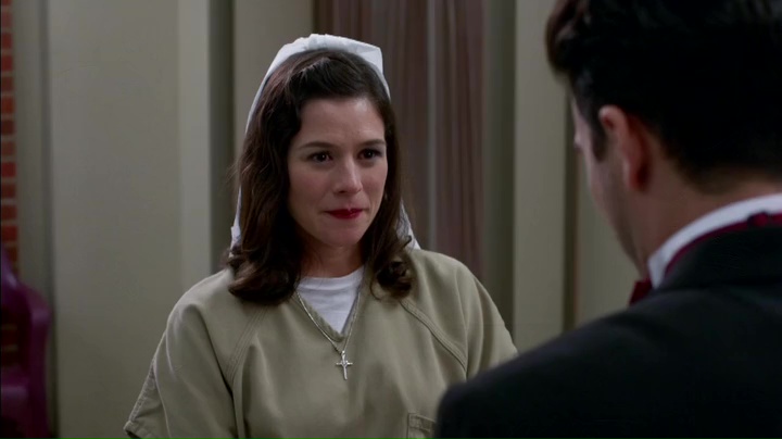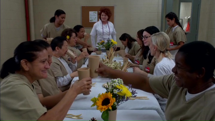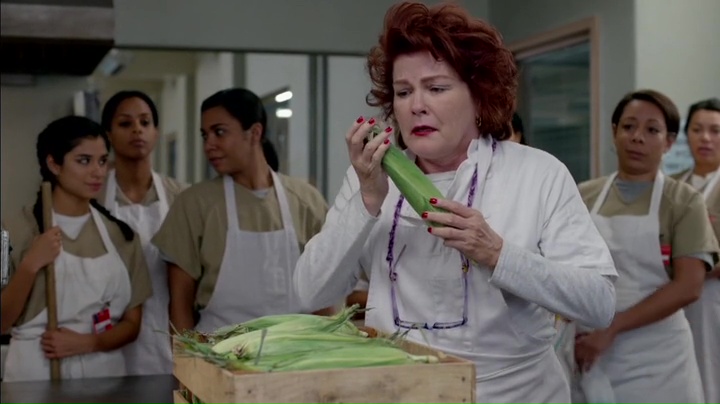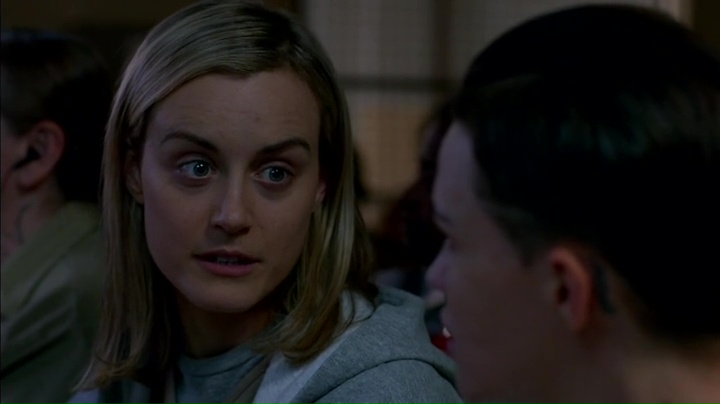 Meno fortunata la storyline di Piper, il personaggio forse più detestato e detestabile della terza stagione. Il problema della sua costruzione non è nemmeno che sia stata resa odiosa quella che era un tempo la protagonista (benché lo show sia sempre stato corale): se la serie si fosse limitata a fare questo, la trasformazione da ricca privilegiata naive a donna senza scrupoli sarebbe stata ricca di spunti. Il punto è che nella maggior parte dei casi il suo comportamento ha agito da repellente, portando quindi la sua storia ad essere quella meno interessante all’interno del penitenziario; il finale di questo episodio e il relativo comportamento nei confronti di Stella nella scena del cinema ne sono un esempio lampante: l’egocentrismo di Piper è diventato con l’andare delle puntate insopportabile, e purtroppo non solo per gli altri personaggi.