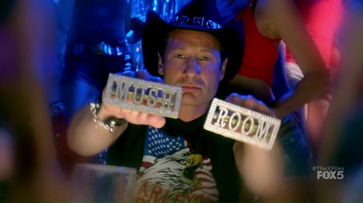 La realtà si scontra con la sua rappresentazione: è come se The X-Files ci ponesse di fronte alla raffigurazione esterna della propria realtà in un modo che mentre rovescia i suoi fondamenti allo stesso tempo li afferma e li fortifica. Nel giro di pochi minuti, come se ci trovassimo davanti ad una commedia degli errori di stampo classico, ci passano di fronte tutti quei passaggi che hanno contribuito a solidificare nel tempo il rapporto tra i due agenti. In questa operazione è impossibile non ritrovare il vecchio che si specchia nel nuovo e viceversa, usando il confronto generazionale per ribadire che ieri come oggi la via migliore da battere sia la conquista della conciliazione delle spinte contrarie. Questa è anche la metafora, un po’ forzata e malamente approfondita, su cui poggia l’intero episodio: in un’epoca in cui i sentimenti opposti si scontrano, si rincorrono e si mescolano, forse la risoluzione dei conflitti si può ritrovare nell’equilibrio tra le opposizioni, nel ritrovamento di una lingua comune, nello sviluppo di una capacità di ascolto.