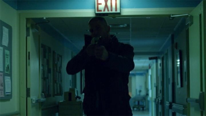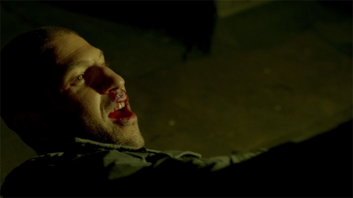 Ma al di là di queste astuzie narrative, a rivelare la tenuta qualitativa della serie sono le analogie visive con cui l’arrivo in scena del personaggio è messo in relazione alla figura di Daredevil: sia nella sequenza d’apertura che vede protagonista il diavolo di Hell’s Kitchen che in quella dell’ingresso di Punisher in ospedale, allo spettatore viene negata la visione dei protagonisti dell’azione, i quali restano nell’ombra o fuori dall’inquadratura, percependo solo le reazioni di terrore e la violenza che li accompagna; allo stesso modo il loro primo incontro avviene, non a caso, su quel tetto da cui vediamo l’eroe ascoltare le richieste di aiuto della città. Ecco quindi che poche semplici ma efficaci mosse – l’episodio è diretto da Phil Abraham, regista del bellissimo “Cut man” – riescono a impostare un confronto fatto di differenze e soprattutto analogie tra eroe e villain, ancor prima che questo venga esplicitato dal punto di vista strettamente narrativo; non sono infatti ancora note le motivazioni che hanno spinto Punisher a questo sterminio.