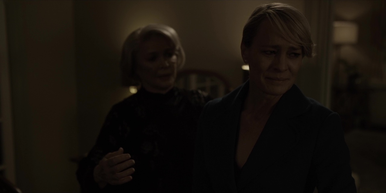 Frank è in secondo piano in questo episodio, soprattutto se confrontato alle varie storyline secondarie che, almeno per ora, paiono intenzionate a stringere il cappio intorno al collo della sua vita politica. Da un lato l’ennesimo scontento di Seth, che potrebbe anche essere alla base della fuga di notizie, dall’altro la storia di Lucas, che mancava dalla seconda stagione: è chiaro che il suo ritorno significherà riaprire la ferita provocata dalla morte di Zoe e ciò che ne è seguito (con nuovi nemici ed una vita nascosta sotto il programma testimoni). Queste due anime, insieme ad una rabbia che stenta a controllare, mettono Frank sempre più lontano da quell’apparente invincibilità delle prime due stagioni, senza riuscire comunque a smontare l’aura di potere che circonda la sua figura (e che Kevin Spacey ormai riveste sempre più comodamente). Mentre la sua corsa contro Heather Dunbar continua, si intravede l’arrivo del candidato repubblicano, giovane e belloccio (non proprio un Trump), un avversario che Frank avrebbe tutte le carte in regola per distruggere. Siamo però solo all’inizio della trama politica, e se essa diverrà più importante in futuro lo sarà con ogni probabilità solo perché collegata con forza al dissidio familiare che Frank sembra davvero in difficoltà a gestire – diviso, infatti, tra rancore e solitudine. Momento migliore dell’episodio è però il suo scontro con la monumentale Ellen Burstyn: pochi scambi che riescono a mostrare la diversità dei due personaggi e al contempo lasciare allo spettatore la sensazione che ci sia un passato importante da rivelare.