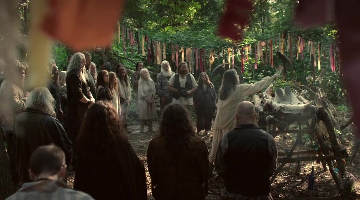 C’è la retorica del clan isolato dal mondo che segue le proprie tradizioni rifiutando il mondo esterno e le sue regole, vivendo in una sorta di Eden bucolico e libero in cui ogni follia è consentita, a patto che segua la coerenza delle regole interne alla tribù.