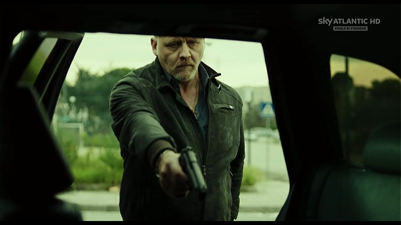 La regia di Cupellini abbraccia la scena trasformando la sua crudezza in tragicità: non è l’atto in sé che ci viene mostrato, ma la tragica, orribile, mostruosa deriva dell’uomo. Il talento di Fabio De Caro, perfetto nell’interpretazione di una delle azioni più ignobili che un uomo possa compiere, fa il resto: l’andatura cadenzata quando scende dall’auto, lo sguardo sgomento con cui osserva la piccola, la forza che insieme al perdono chiede a quel crocifisso che tiene in petto, la mano tremante con cui impugna l’arma e poi la risolutezza con cui spara, come a ribadire che la sua fedeltà incondizionata a don Pietro non gli lascia alcuna via d’uscita.