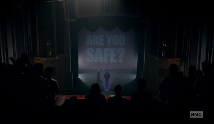 L’attesa è tutta per lui e infatti nei primi due terzi dell’episodio non lo si vede mai. Di lui ci viene concessa solo la voce durante una telefonata con Boz, ma tanto basta per riportare in superficie il suo fantasma, perché quel suono arriva come una minaccia da parte di colui che sa le cose senza un’apparente spiegazione, che conosce la vita privata di Boz (la nascita del nipote) senza che questi gliel’abbia mai raccontata. E infine arriva il momento del suo show, che non poteva essere altrove che a teatro, su un palcoscenico in cui Joe si presenta con una nuova maschera, ma pur sempre nei panni del guru visionario. Questa volta è un professionista della security, che ha tra le mani un antivirus sulla cui creazione non ha ovviamente alcun merito, ma che vende al suo pubblico nel migliore dei modi possibili, attraverso un keynote speech in cui le somiglianze con Steve Jobs sono tantissime, dall’abbigliamento, alla barba, fino alla gestualità.