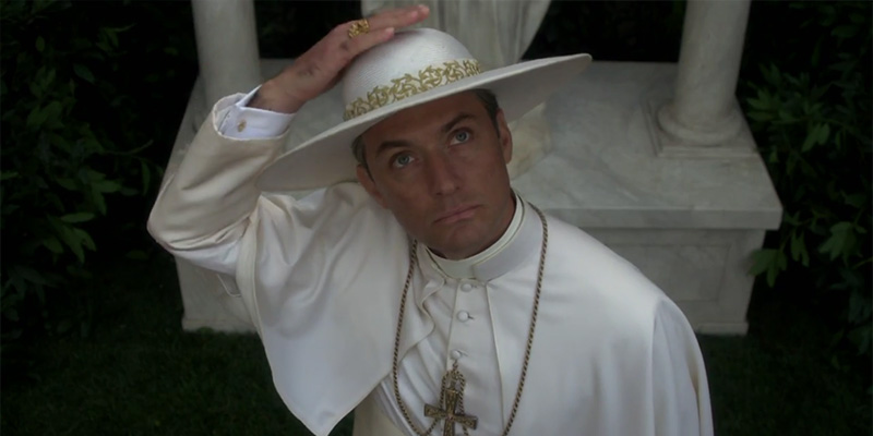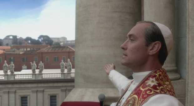 Jude Law in questo è una scelta assolutamente azzeccata perché rappresenta la quintessenza del “feticcio” attoriale di Sorrentino: pur conservando la luminosità di quegli occhi che lo hanno reso celebre, Law sembra più che altro caratterizzato da una bellezza decadente, un lento sfiorire che ben si adatta alla figura di un uomo bello, alla ricerca del sacro in un contesto, però, di vecchiezza. Il suo personaggio non ha nulla di edificante, ma appare essere al momento il più lucido dei fanatici, il più sognante dei passatisti. I gesti e le espressioni di Jude Law entrano in profondità del personaggio sia nell’alto ufficio papale sia nei momenti di più intima umanità, in cui si mostra in tutta la sua fragilità di orfano senza risposte. Sullo sfondo giace il Vaticano, ormai solo un rimasuglio del grande Stato Pontificio (chissà per quanto ancora nella realtà filmica); eppure in esso si concentrano gelosie, vendette, tradimenti, scandali. Se c’è un luogo in cui si è conservato intatto il grande gioco delle corti medievali è proprio presso l’istituzione più antica ancora rimasta nel mondo occidentale. Questa ricorsività del tempo ritorna negli ambienti, così esageratamente volgari, così antichi e fuori dal tempo e che accolgono suore e cardinali altrettanto caduchi.