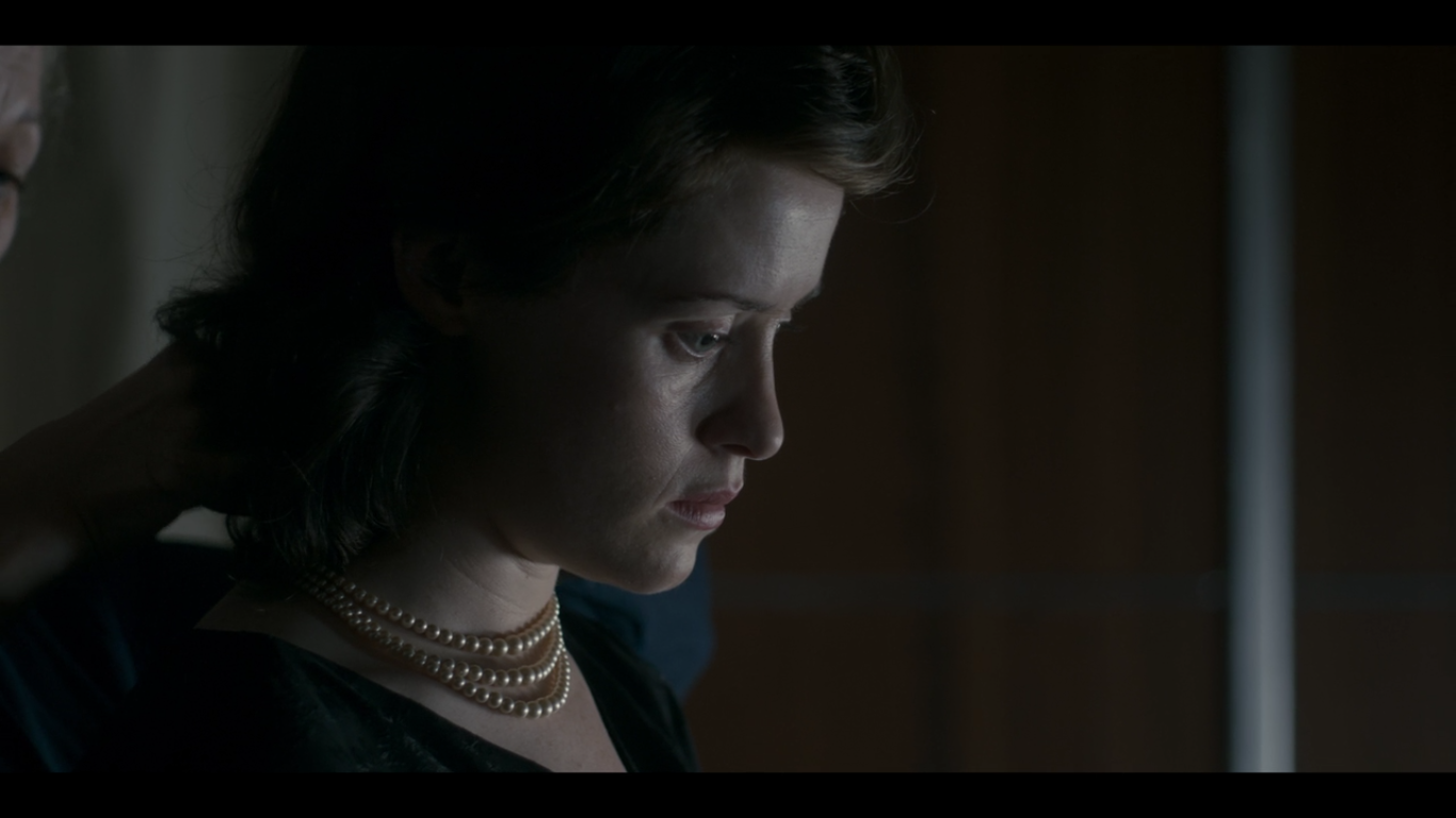 Edward ha fatto prevalere l’individualità sulla monarchia per amore; così non ha fatto Elizabeth, ed il suo rapporto col marito Philip (un bravissimo Matt Smith)è un nodo fondamentale della trasformazione della Regina. Puntata dopo puntata, dall’incoronazione in poi, i due sembrano allontanarsi e riavvicinarsi un milione di volte, sempre sul punto di esplodere ma sempre vicini. Noi sappiamo ovviamente come è andata a finire: il duca Philip è ancora al fianco della Regina, che nel 1957 gli ha dato il titolo di Principe e nel 1960 ha decretato che i suoi diretti discendenti potessero avere il doppio cognome Mountbatten-Windsor*. Ma allora tutto questo non c’era: c’erano i titoli tolti, il cognome abolito, una posizione in ginocchio all’incoronazione, un passo sempre indietro in qualunque evento pubblico. La serie decide di puntare molto su questo, conscia del fatto che sappiamo quali saranno gli esiti di questa felice unione (Elizabeth in un intervento pubblico lo definì “la mia roccia”*) e che quindi può permettersi di mostrare senza indorare la pillola i difficili anni di adattamento della coppia al loro ruolo istituzionale. Vediamo più volte Elizabeth alla finestra, e in queste occasioni vediamo il passaggio da madre e moglie che osserva dall’esterno il marito e i propri figli giocare, a regina che guarda il proprio compagno andare via in macchina, da solo o con altri. La finestra sul mondo diventa prigione attraverso cui guardare all’esterno una vita che non si potrà più avere; gli affetti cedono il passo al potere con un pegno di dolore altissimo, che in pochi vedono e che soprattutto lei non lascia trapelare. Laddove il padre (Jared Harris, un eccezionale George VI) aveva potuto manifestare la propria interiorità e le proprie debolezze, complici un ruolo cadutogli addosso all’improvviso e una battaglia incessante contro la balbuzie, Elizabeth non ha mai potuto: sin da bambina sapeva che sarebbe diventata capo del regno e per di più, diventandolo in giovane età e soprattutto da donna, non ha potuto permettersi di mostrare il fianco a nessuno. Qualcuno doveva sacrificarsi, ed è stata lei stessa: il prezzo diventa in poco tempo una solitudine assordante, amplificata dagli enormi spazi di Buckingham Palace che sembrano far diventare Elizabeth, un’ottima Claire Foy, ancora più piccola e minuta a mano a mano che la consapevolezza del potere cresce.