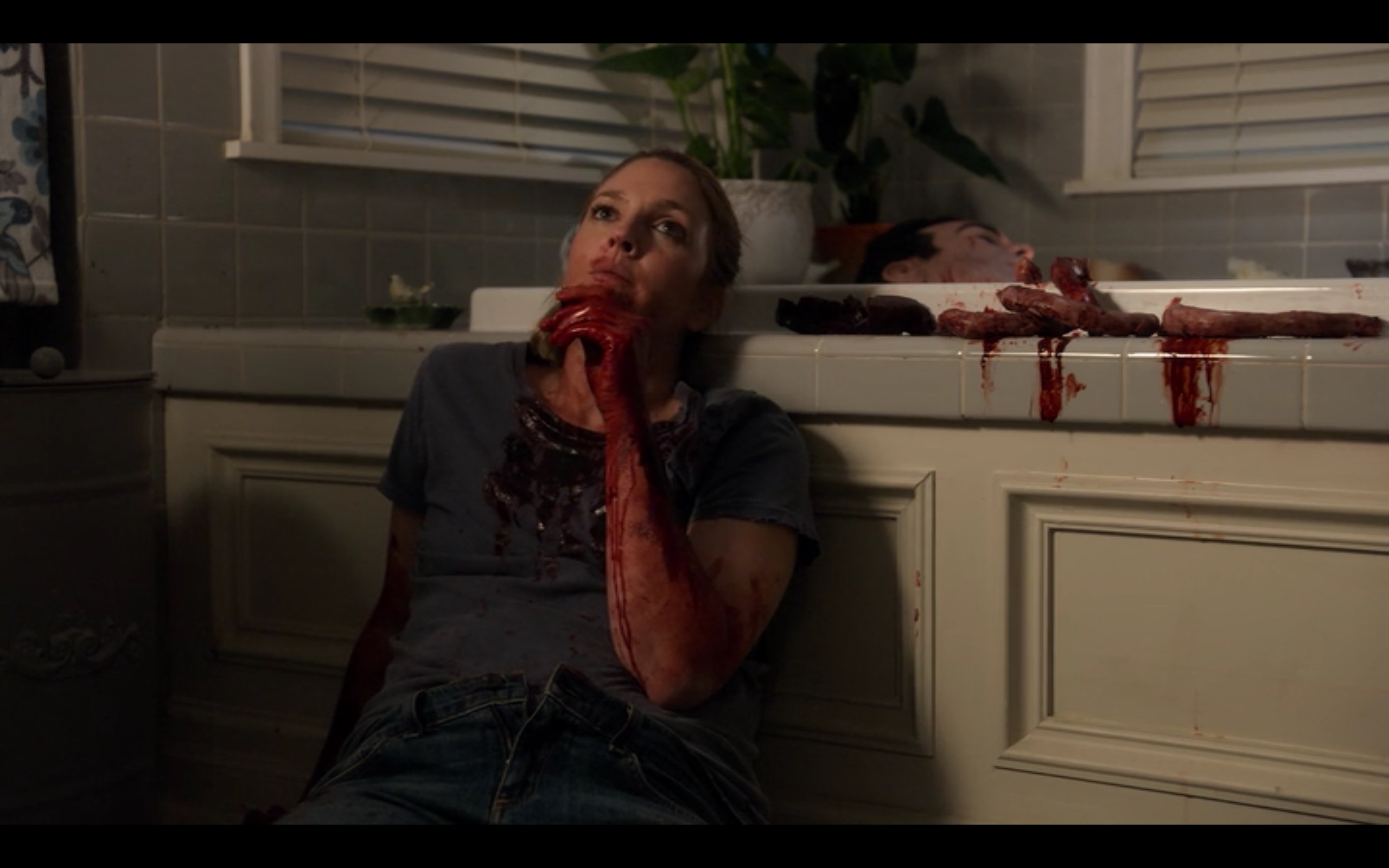 Qui, al contrario che nella classica narrativa zombie, non c’è nessuna vera minaccia per il pianeta ma soltanto una storia di persone normali in circostanze di violenza eccezionali (situazione che mostra parecchie somiglianze, ad esempio, con quella di Fargo) che da una parte godono dei benefici di questa perdita di controllo, ma dall’altra devono negoziarla con la vita nei sobborghi che sentono ancora come l’unica possibile; la principale ironia della storia, che genera anche i momenti screwball comedy più riusciti, è infatti legata all’ammirazione che amici e vicini provano per questa nuova versione di Sheila, cercando di carpirle il segreto di questo benessere – tutti momenti che invariabilmente finiscono per girare intorno all’alimentazione come ossessione contemporanea.