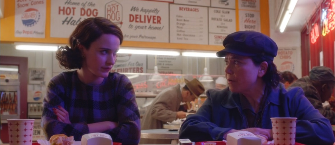 Come spiega questa interessante intervista a Amy Sherman-Palladino, The Marvelous Mrs. Maisel si aggiunge quindi alla schiera di serie, tra cui spiccano Crazy Ex- Girlfriend e Jane the Virgin, che puntano ad essere “challenging and delighting, instead of supposing the two have to be in conflict”. Sia sul piano della scrittura che delle scelte più puramente “compositive”, si tratta di un prodotto di altissima qualità, di certo non sperimentale come un I Love Dick o un Twin Peaks, ma che sa perfettamente come intrattenere e raccontare una storia. L’ambientazione è curatissima, i personaggi sono leggendari e le situazioni in cui si ritrovano vengono gestite con un mix perfetto di realismo e ironia. Basti pensare al modo in cui viene descritto tutto il processo del divorzio che coinvolge non soltanto Midge e Joel ma – come succederebbe anche oggi e quindi figuriamoci nella comunità ebraica della New York anni ‘50 – le due famiglie degli ex-sposi, ovvero attraverso dialoghi meravigliosi che farebbero invidia al miglior Sorkin e un delicatissimo lavoro di caratterizzazione su entrambi i fronti. Anche il percorso di Susie è emblematico: molto più che una macchietta, come ad esempio a tratti è stata Sookie, forse il simbolo dell’evoluzione creativa di Amy Sherman-Palladino.