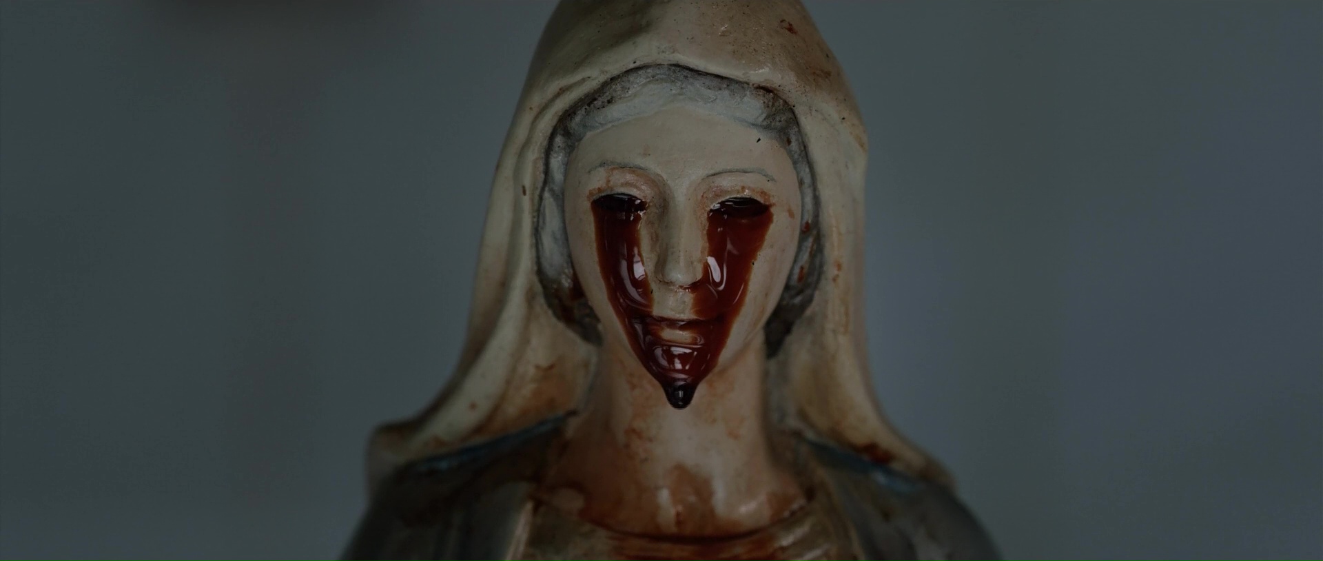 Non c’è una spiegazione ufficiale sul perché solo questi pochi minuti siano in una marcata aspect ratio, ma sicuramente la scelta è stata fatta per sottolineare i particolari, che in una visione più ampia forse si sarebbero persi: l’elemento che più salta all’occhio è il sorriso della statua della Vergine Maria che, visto da così vicino, sembra quasi beffardo, come a volerci dire che quello che ci aspetta non è tutto rosa e fiori, come ci potremmo aspettare da un salvifico miracolo; ma è anche una lente d’ingrandimento su sangue e cellule che scorrono sullo schermo, la parte scientifica e razionale del tutto, quella che si può toccare e vedere, anche se non riusciamo a darne una spiegazione razionale.