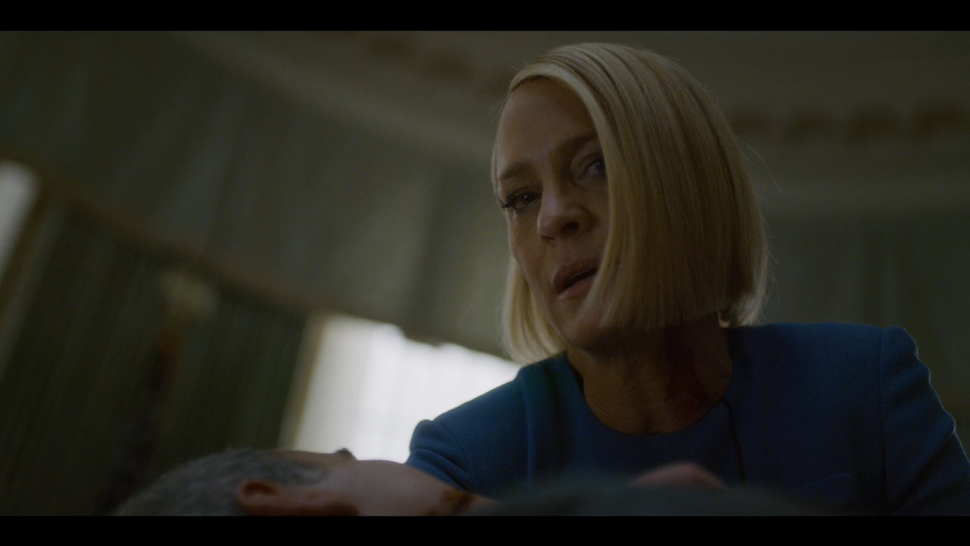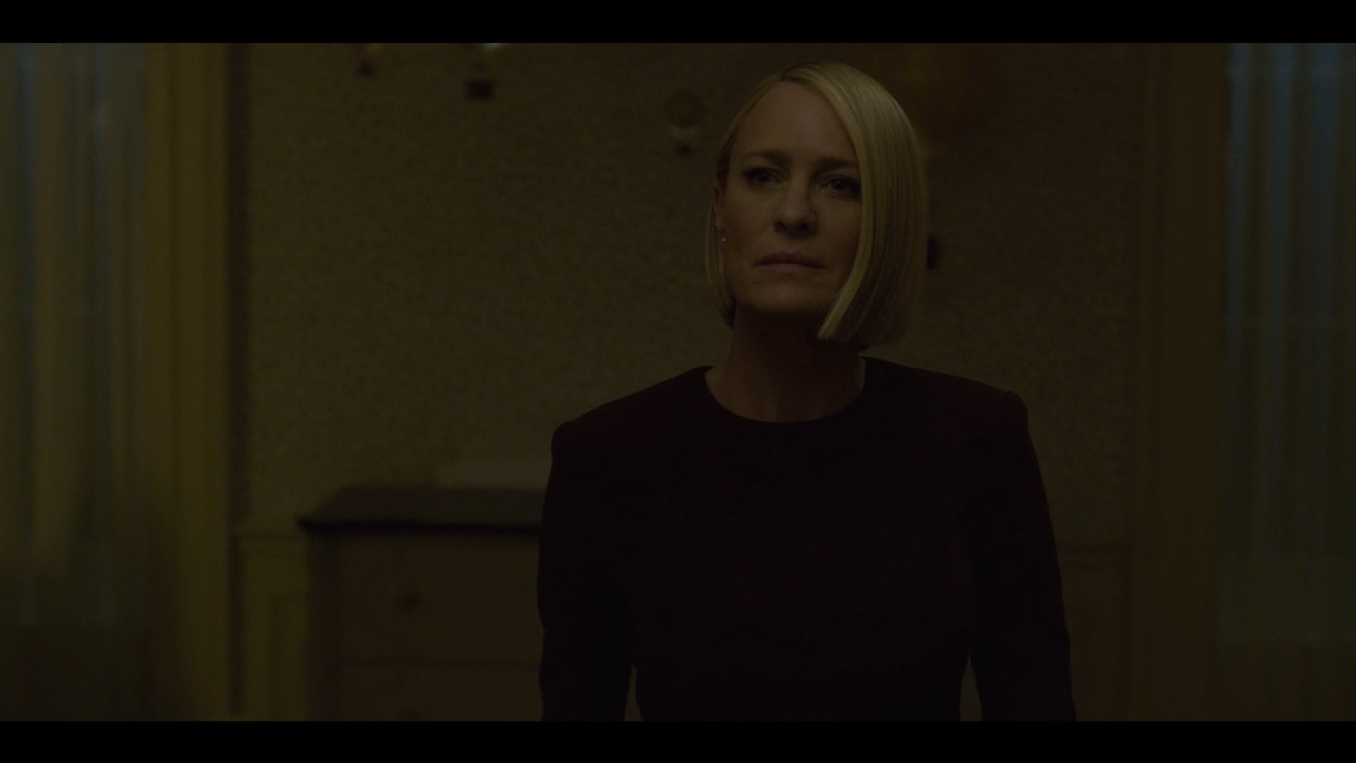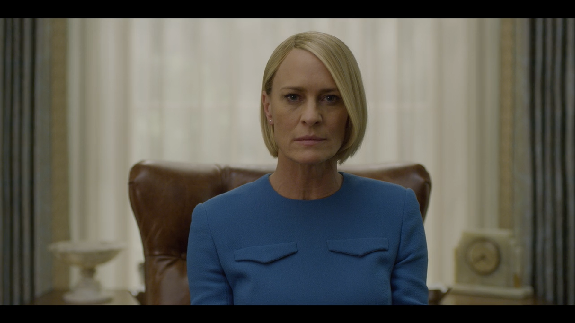 Si è dunque deciso di ripartire da Claire Underwood, e ciò va detto subito: si è trattata dell’unica scelta sensata. Non solo Robin Wright ha una presenza a dir poco magnetica, ma il suo personaggio è stato nel tempo sempre più potente e ha avuto un arco narrativo denso e ricco. Avere lei come Presidente degli Stati Uniti è riuscito molto perché ha permesso agli autori di sfruttare il suo essere la prima donna a rivestire quella carica, senza però edulcorare il messaggio né deviarlo in un senso educativo: si tratta di una persona disposta a tutto per mantenere il proprio potere, e dunque non si fa alcuna remora nel pilotare la narrativa a proprio vantaggio. Ecco perché sottolinea a più riprese la propria unicità e forma ipocritamente un Gabinetto di sole donne. Claire è dunque ancor più interessante di quanto non fosse in precedenza; il problema è che non può sostituire Frank imitando il suo comportamento. L’idea della rottura della quarta parete era da aspettarsela, lo avevamo già visto, ma è un fallimento su tutta la linea: non c’è una sola frase di Claire che faccia davvero breccia, si percepisce solamente uno scimmiottamento di un modus operandi che non le appartiene e che dunque non è in grado di bucare lo schermo. Gli autori avrebbero dovuto pensare a un modo diverso per farlo, dandole uno stile molto più personale, in modo tale che risultasse da un lato fresco e dall’altro in continuità con la tradizione, tanto più che anche Doug si ritrova a guardare in faccia lo spettatore.