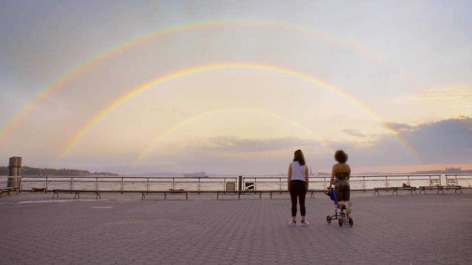 E ogni singolo istante passa sui social, per cui la regia è una costante e soggettiva story prima dal telefono di Ilana e poi da quello di Abbi, riproponendo fedelmente non solo i video ma anche i post con i loro commenti, tag, emoji, gif, esattamente come se noi le stessimo seguendo come si fa per qualsiasi influencer sul proprio Instagram. Questa perenne visione ci fa essere doppiamente spettatori, della loro giornata ma anche della nostra, che passiamo una porzione del nostro tempo a vedere condensate in una manciata di minuti le giornate di altre persona; una cosa che va oltre la curiosità dell’altro, ma diventa un modo per sapere chi è il prossimo e giudicarlo attraverso quella lente, quello schermo, che pretende di mostrarne veramente la vita – che è poi alla fine dei conti solo la migliore versione data in pasta al pubblico dominio. Lo scontro/incontro fortuito con una vecchia amica del college, sistemata e con quattro figli, è ancora una volta nella sua immensa semplicità lo scontro/incontro con la vita “vera” dell’altro, che siamo convinti di conoscere fino a quando poi capiamo che ne abbiamo solo una versione parziale ed edulcorata. Non a caso, quando Cheesy/Lindsay incontra le due ragazze, la narrazione riprende “normalmente” dall’esterno, torna ad essere vera-finzione, ed è lì che accade la magia: un triplo arcobaleno sovrasta la Statua della Libertà e le due protagoniste, ormai senza telefono, si ritrovano ad osservare da vere ammiratrici quello spettacolo della natura.