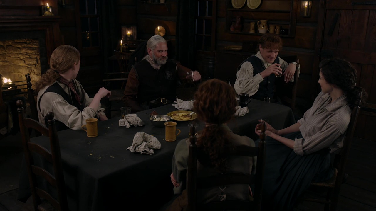 Ad accompagnarsi alla profondità dei temi toccati dalla serie c’è sempre la splendida cornice narrativa che, come in ogni melodramma che si rispetti, richiede un’enorme sospensione dell’incredulità da parte dello spettatore al fine di regalare colpi di scena incredibili, momenti epici e avventure nelle foreste del North Carolina. Lo show mette continuamente da parte un certo grado di realismo per costruire un mondo eterogeneo in cui possono convivere rurali tribù di nativi americani e lussuose cene di gala tra nobili, ma soprattutto nel quale gli incontri improbabili non risultano così fuori luogo se giustificati da una trama densa e ricchissima come quella di ogni episodio. L’opera di world-building e di edificazione di un parco di personaggi mai banali e tutti con le loro peculiarità, infatti, si amplifica e si espande: il ritorno di Murtagh, il rapporto Fergus-Marsali, la bontà di John Gray, la risolutezza di Jocasta, la determinazione di Ian. Nonostante nasca nella sua forma pura come una love story, Outlander è sempre di più un racconto corale, che si fregia della non banale abilità di non lasciare per strada nessuno dei suoi personaggi, tutti dotati di una propria individualità in modo da evitare facili manicheismi. Persino Stephen Bonnet, che fino a “Providence” rimane un personaggio bidimensionale, caratterizzato solo dalla sua crudeltà, con la visita in prigione di Brianna assume un minimo spessore, quanto basta per avere la possibilità di essere sfruttato ancora in futuro, lasciando una strada aperta in tal senso che potrebbe rivelarsi molto utile.