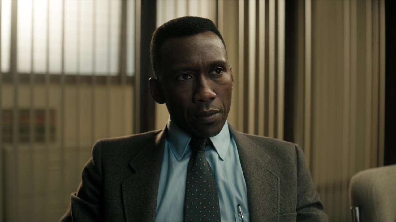 Partiamo quindi da un punto di contatto che però sembra con questi due episodi mostrare i primi segni di autonomia: si tratta delle diverse timeline e in particolare del loro utilizzo non solo come architettura della serie, ma anche come colonna portante della narrazione. La storia del caso Purcell e dei due detective deputati ad indagare – Roland West (Stephen Dorff) ma soprattutto Wayne Hays (Mahershala Ali) – si dipana tra il 1980, anno della sparizione dei due bambini, il 1990 con il ritrovamento di Julie che porta alla riapertura del caso, e il 2015, con un’intervista ad un ormai invecchiato Hays che mostra i segni di una malattia degenerativa della memoria già iniziata nel 1990. Innanzitutto possiamo dire che, sebbene anche la prima stagione avesse avuto tre linee temporali (prima due, poi una terza per qualche episodio), in questo caso la rappresentazione simultanea di tutte e tre emerge sin dall’inizio, andando a coincidere con tre fasi ben distinte del caso.