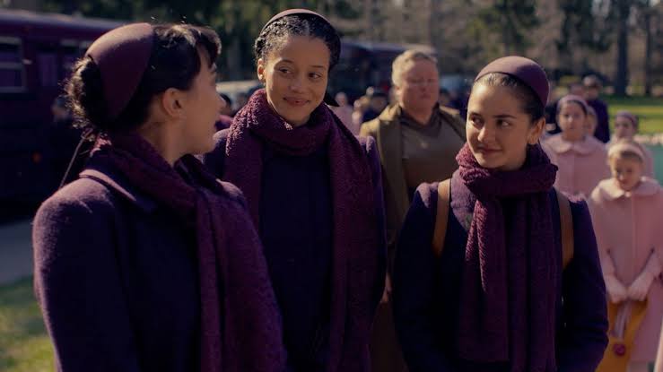 Tornando a questo esordio, lo show ci mostra sin da subito come il regime controlli le “sue” figlie. Innanzitutto, anche per loro sono previsti dei colori e dei nomi conseguenti: abbiamo quindi le “Pink”, che sono le bambine più piccole; le “Plum”, di cui fa parte Agnes, ovvero le ragazze più grandi che non hanno ancora avuto le mestruazioni; le “Green”, ossia le Plum che, a seguito dell’arrivo del ciclo mestruale indosseranno una spilla verde e saranno ritenute idonee al matrimonio; e infine troviamo le “Pearl”, le ragazze vestite in bianco che arrivano dall’esterno di Gilead in cerca di salvezza e che quindi devono compiere un percorso più lungo di redenzione dai loro peccati, ereditati per il semplice fatto di essere nate al di fuori del regime. Le ragazze vanno alla scuola dedicata ad Aunt Lydia (Ann Dowd) che, dopo essere stata idolatrata e poi osteggiata, è stata di nuovo celebrata con una scuola e una statua a suo nome (benché, come faccia notare anche lei, sia ancora viva): un istituto in cui le ragazze ovviamente non studiano e non leggono, ma imparano tutte quelle mansioni casalinghe che le renderanno delle perfette “mogli di Comandanti”. I primi tre episodi creano le basi di questo mondo, che è conosciuto e al contempo nuovissimo, e introducono la prima novità ereditata dal romanzo: la frammentazione del punto di vista, che già nei primi episodi passa da Agnes a Daisy.